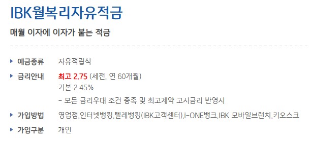 | 금리 | 기본 2.45%, 우대금리 0.3% |