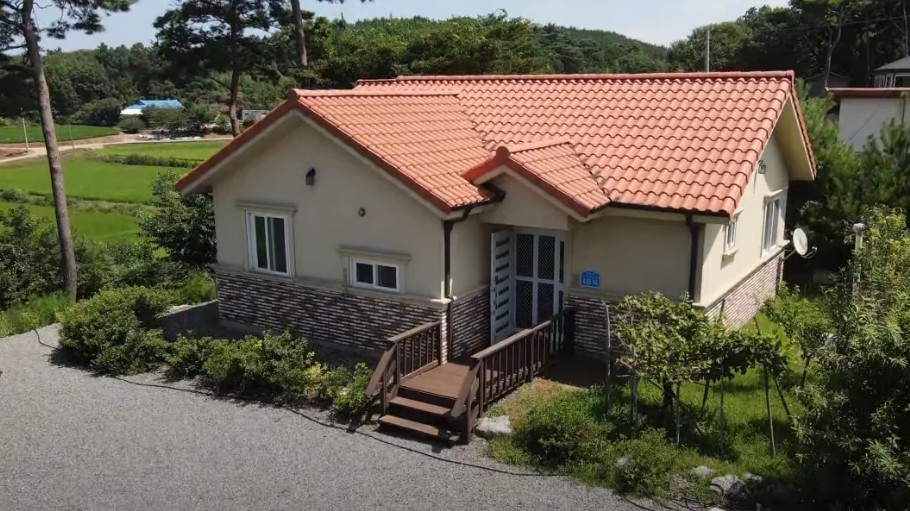충남 태안 저렴한 전원주택 매매 급매물 - 서향 경량철골구조 잔디 자갈마당이 깔린 주택, 매매가 2억4천만원