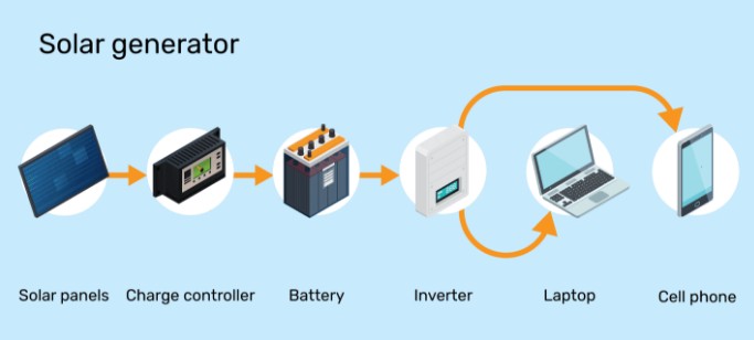 휴대용 태양 발전기는 태양 에너지를 포착하기 위해 태양 전지판을 사용하고, 그 에너지를 나중에 사용할 배터리에 저장합니다. 대부분의 태양광 발전기는 RV 캠핑, 보트 및 그리드 정전 시 예비 전원으로 사용됩니다.