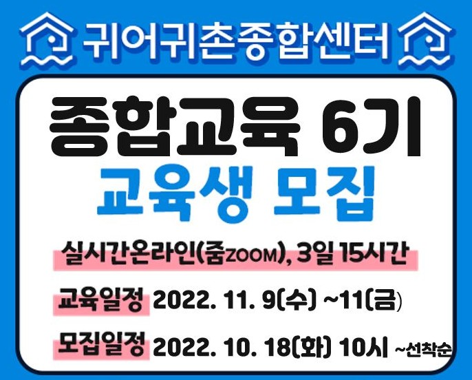 2022년 귀어귀촌 종합교육 6기 교육생 모집 안내
