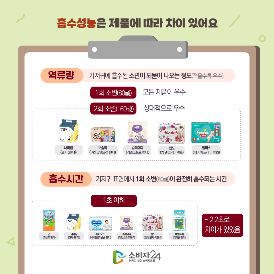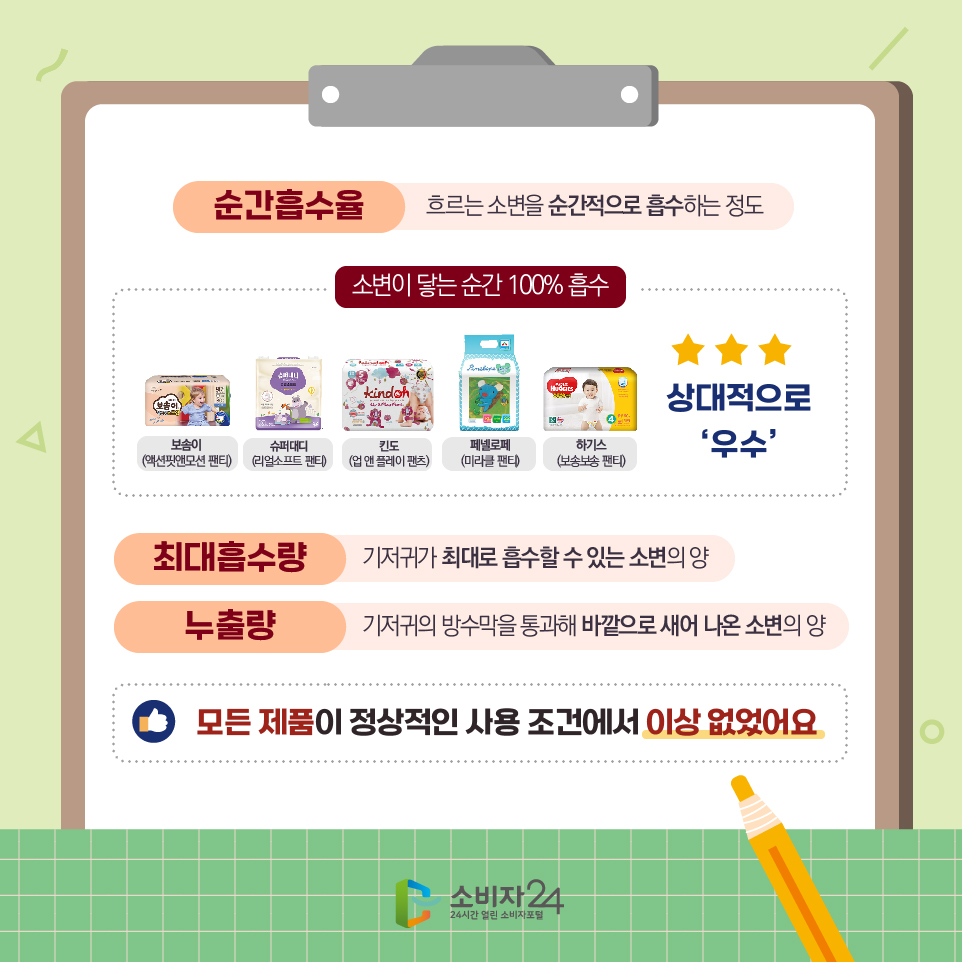 사용이 편리하고 흡수력이 좋아 소비자들이 선호하는 유아용 일회용 팬티 기저귀, 흡수성능 사용감은 제품에 따라 차이가 있습니다.
